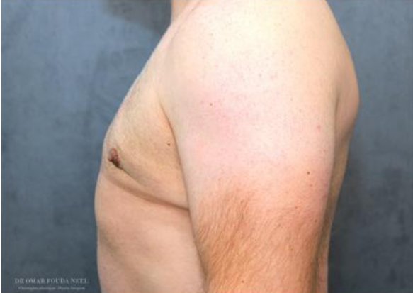 This is a 43-year-old man who consulted me for gynecomastia. He was unhappy with the look of his chest area. With liposuction, a total of 500ML of fat was removed from the left side of his chest and a total of 600ML was removed from the right side of his chest. The patient is now very happy with the look of his chest area. Disclaimer: These photographs are provided as a guide only to provide information on the nature of the intervention. They do not constitute a guarantee of result.***