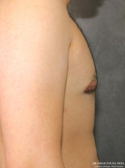 This is a young man who consulted with me because he was unhappy with his Gynecomastia for many years, his goal was to obtain a flatter and more masculine chest area. Gynecomastia with excision was performed. After one year, the patient is very pleased with his results.. **Disclaimer: These photographs are provided as a guide only to provide information on the nature of the intervention. They do not constitute a guarantee of result.***